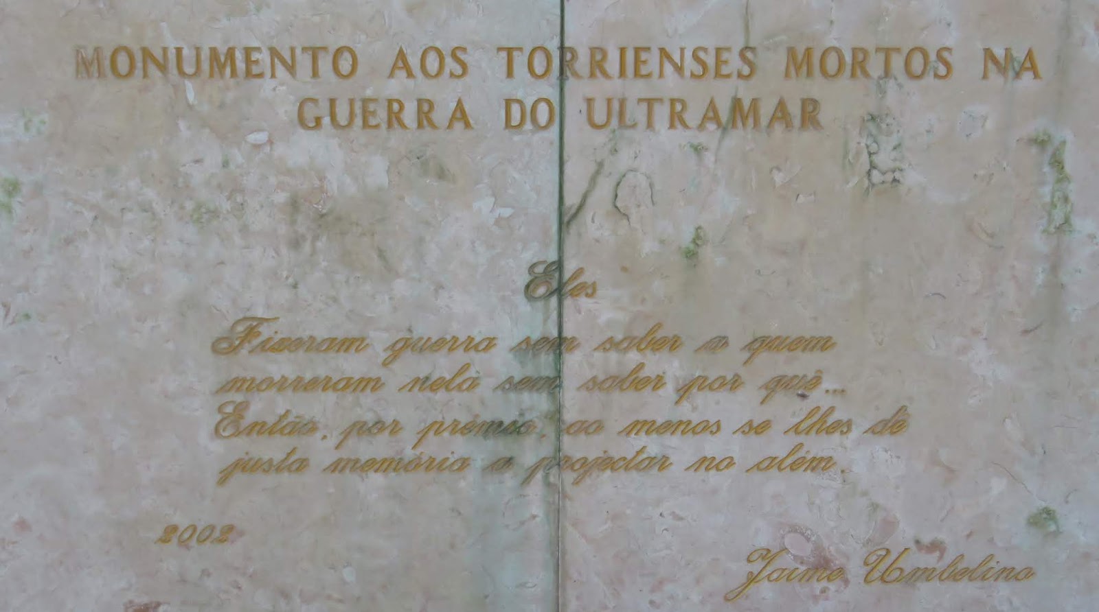 Frase inscrita no Monumento aos Mortos da Guerra Colonial, no Entroncamento.